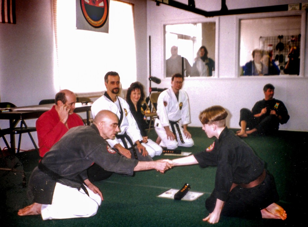 Receiving my black belt at the age of 13 from my Shihan Doug McDonald at Rising Sun Studio in Hudson, MA. March, 1998.